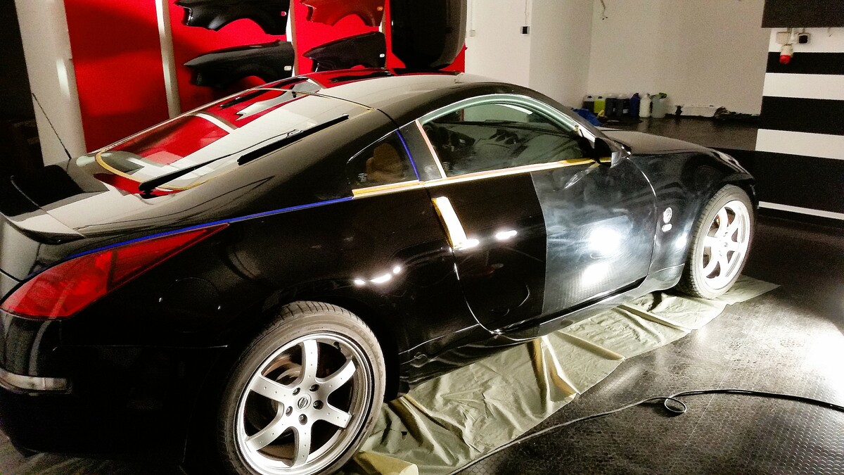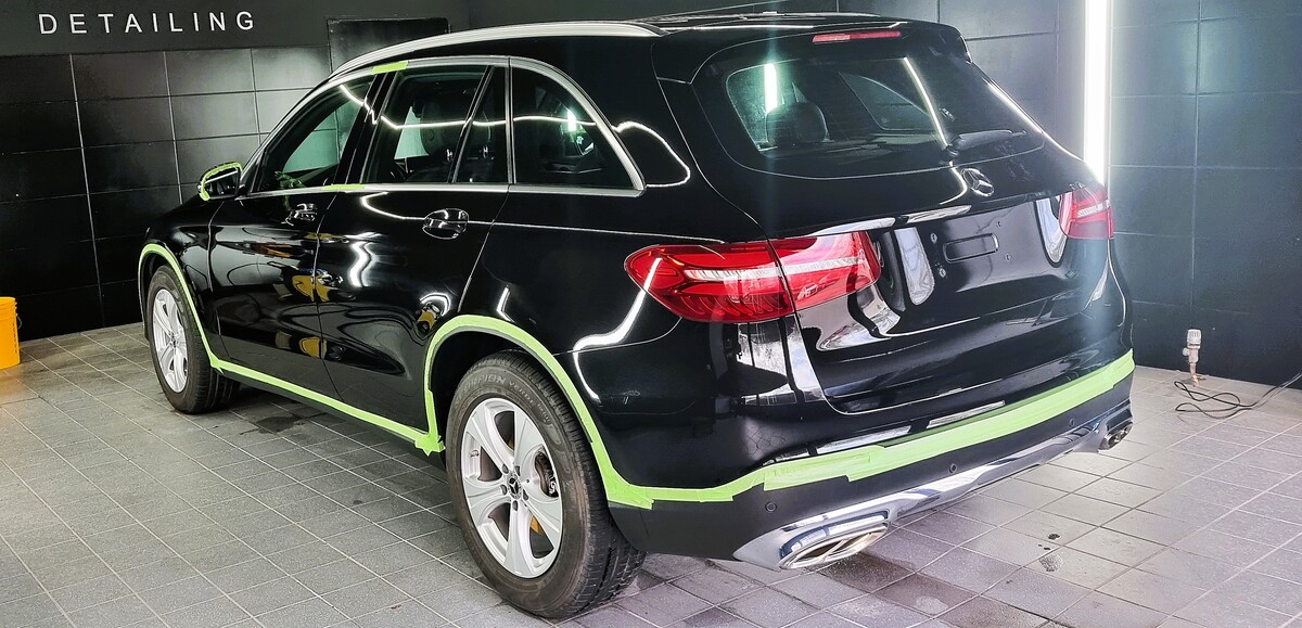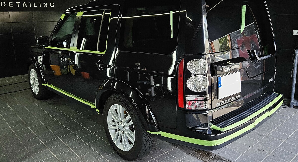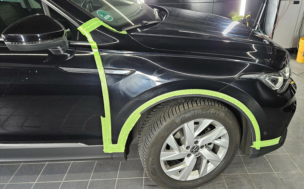 Zu Beginn erfolgt eine gründliche Außenwäsche, bei der die Lackoberfläche nicht nur gereinigt, sondern gleichzeitig chemisch dekontaminiert wird – ideal zur Entfernung von Teer, Flugrost und sonstigen hartnäckigen Verunreinigungen. Um sämtliche tiefsitzende Verunreinigungen zu entfernen, erfolgt im Anschluss eine Nachbehandlung mit Reinigungsknete und eine sorgfältige Entfettung des Lacks. Dadurch entsteht eine porentief gereinigte und glatte Lackoberfläche. Zusätzlich werden alle empfindlichen Fahrzeugbereiche sorgfältig abgeklebt, um ungewollte Beschädigungen zuverlässig zu vermeiden. Erst nach dieser intensiven Vorbereitung, die in der Regel 3-4 Stunden dauert, kann mit der eigentlichen Lackpolitur begonnen werden.